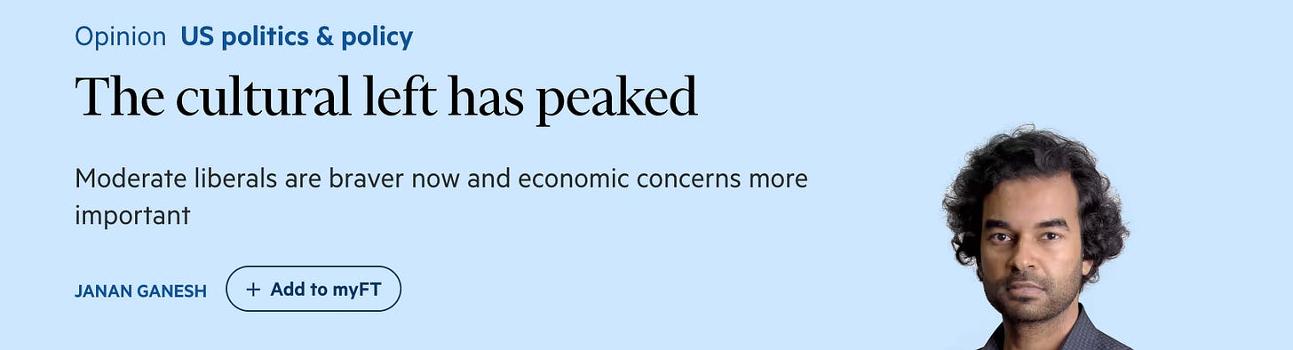 Identity politics is another perverse fruit of success. The movement grew during the decade of economic expansion and peace that followed the 2008 crash. As those benign conditions fell away, so did the movement. It is hard to care that Augustus Gloop is called “fat” at a time of double-digit inflation. It is hard to deplore microaggressions while Ukraine is enduring a rather macro one. The cultural left hasn’t been defeated so much as demoted: in salience, in moral urgency. Grievances that once had force now seem beside the point.